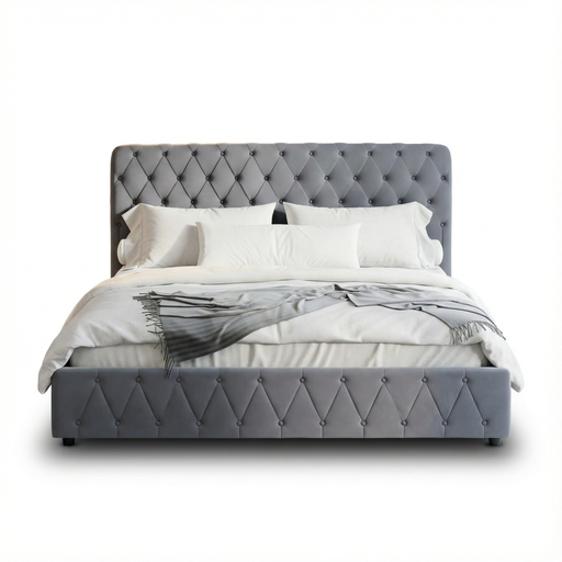 אספקה מיידית שלם וקח ! 🚚 מראה עשיר ומרהיב לחדר השינה שלך. בד יוקרתי ורחיץ . גב המיטה בעל נוכחות כובשת עם עיצוב מעניין. בסיס המיטה עשוי מתכת מגולוונ...